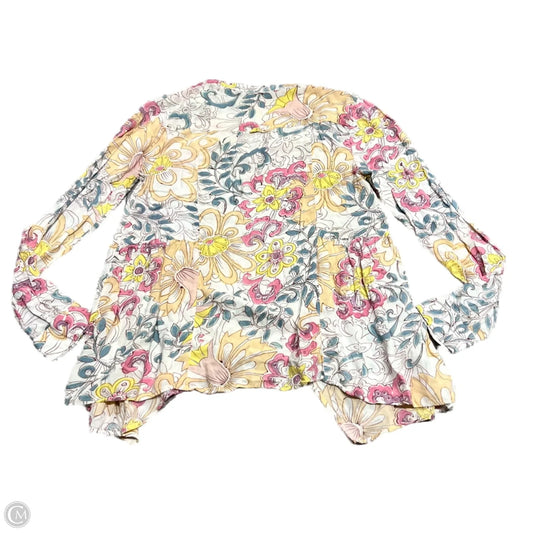 Top Long Sleeve By Maeve In Cream & Pink, Size: S