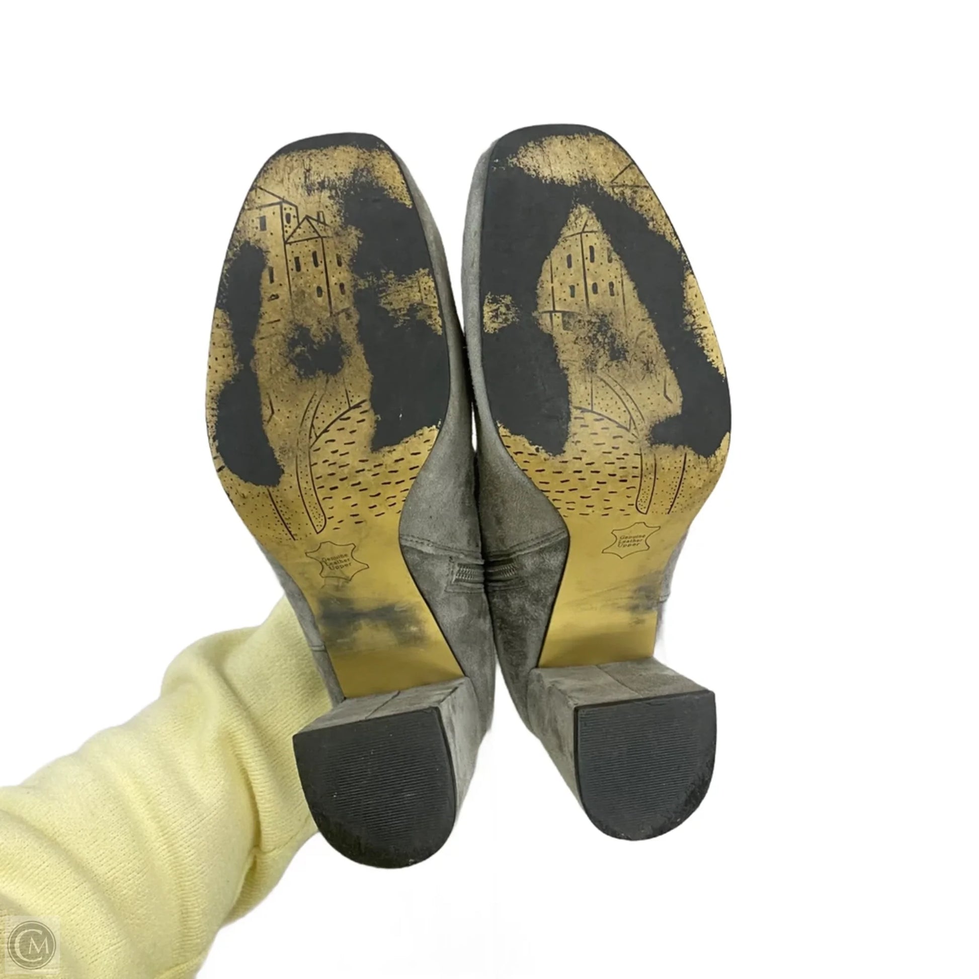 Step into sophistication with these grey ankle heel boots from Clothes Mentor in size 8. Crafted with quality materials for a timeless elegance that exudes confidence.