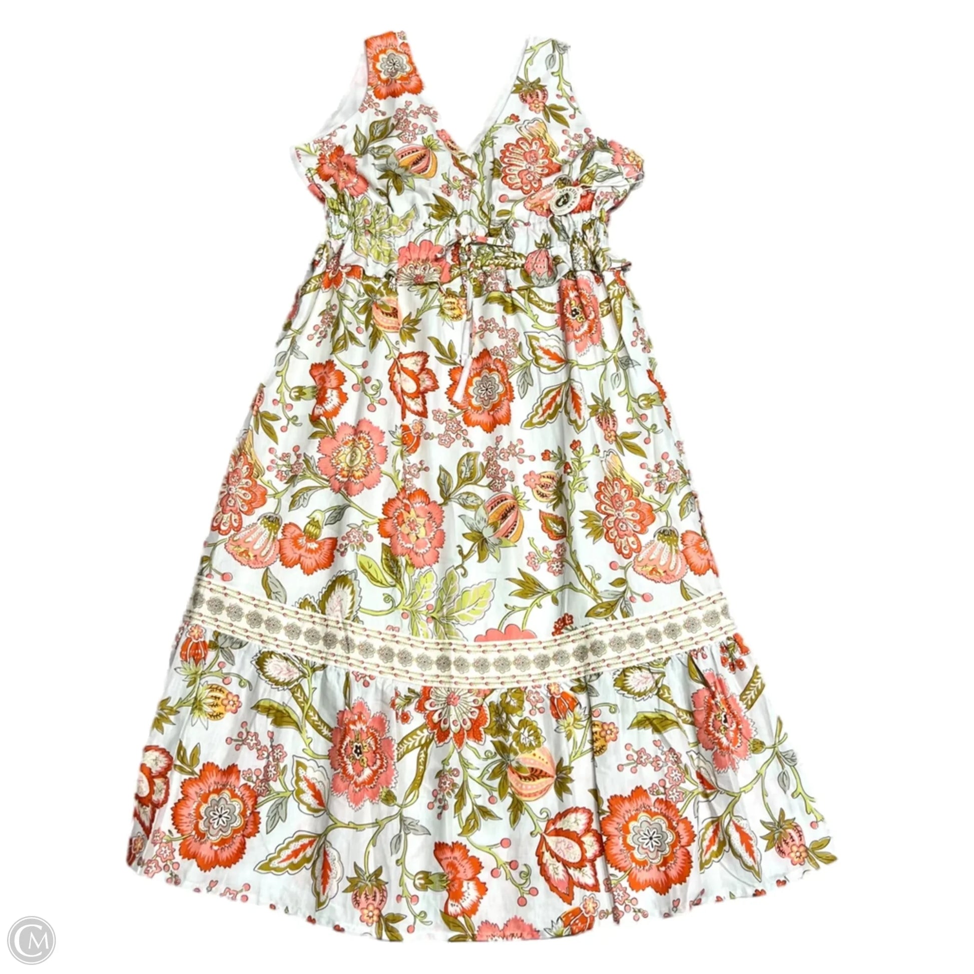 Dress Casual Midi By Spartina In Green & Orange, Size: Xl