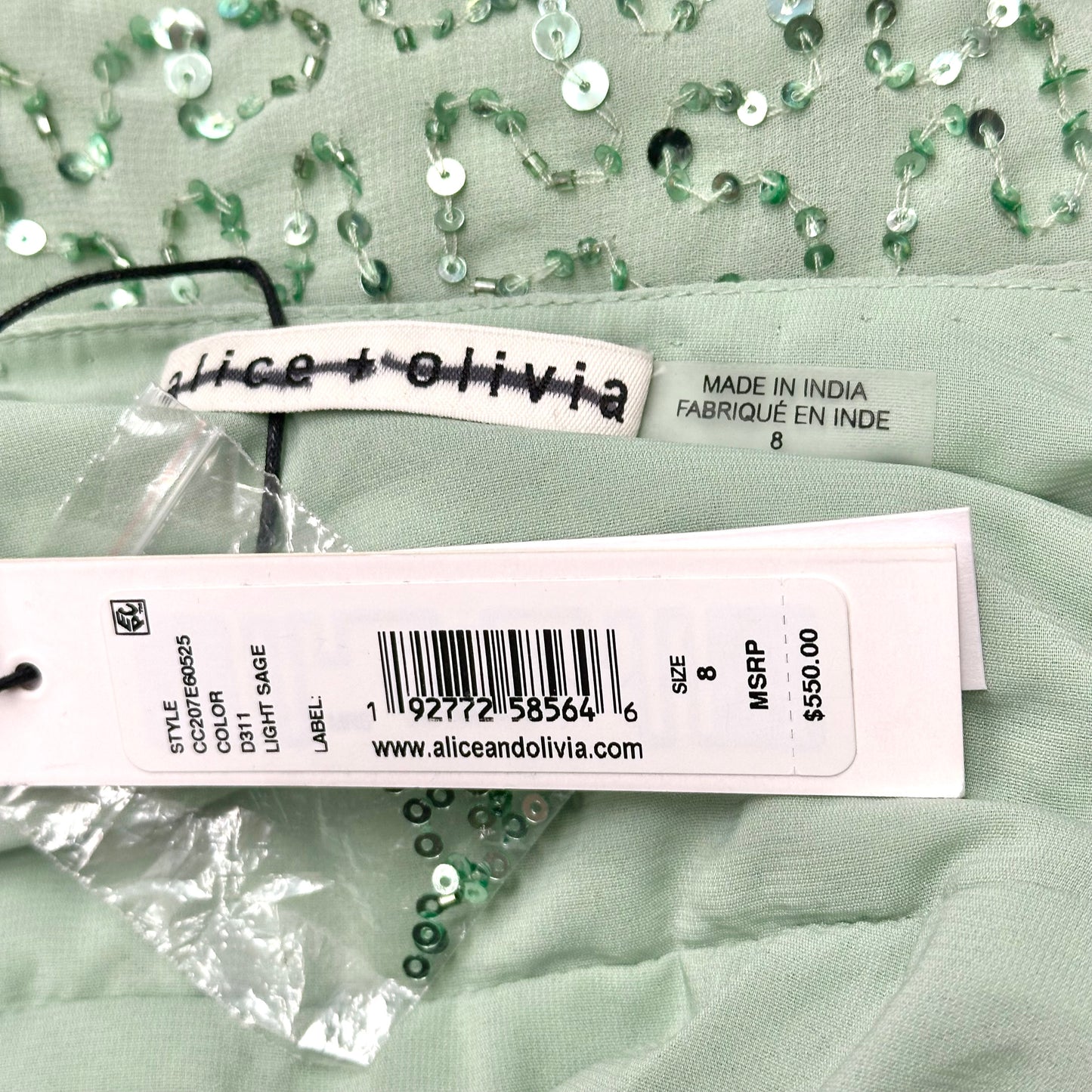 Experience the sophistication of Alice + Olivia's mint Dress Designer in Size M, a luxurious piece exuding elegance.