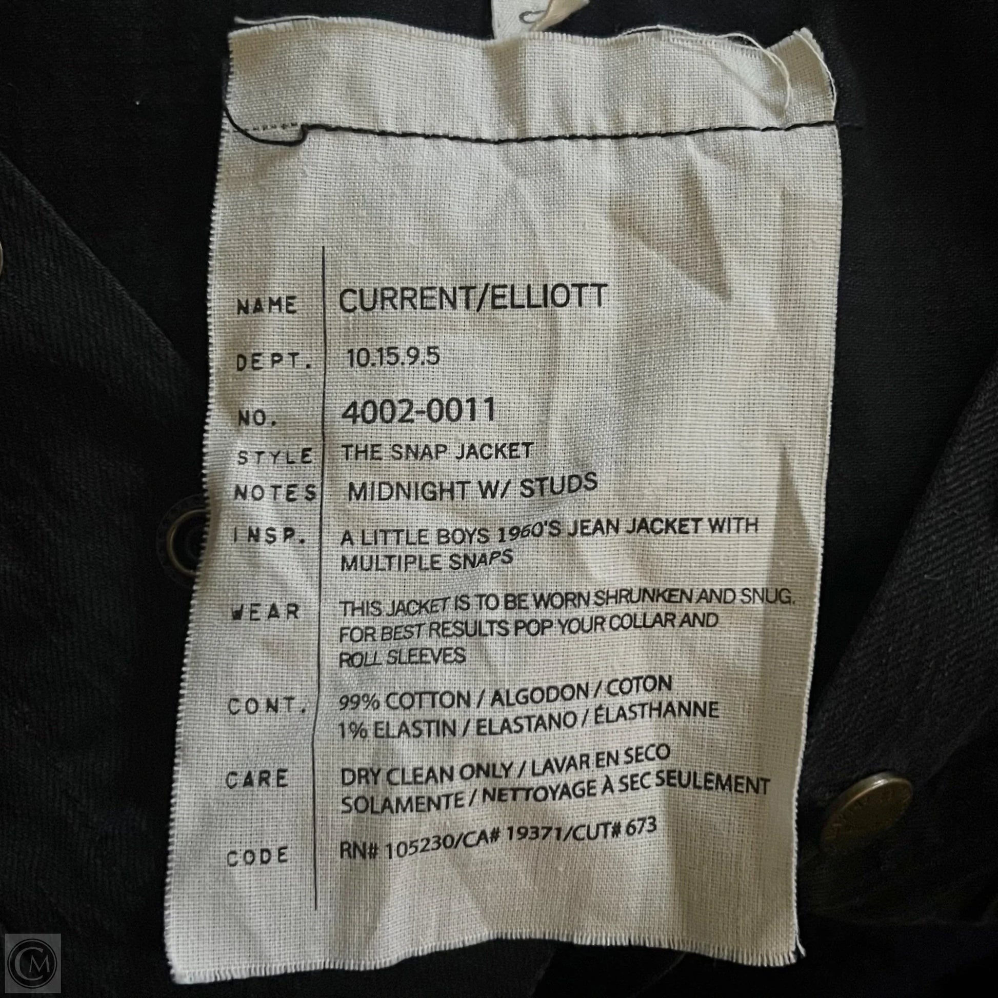 Jacket Denim By Current Elliott In Black, Size: Xs