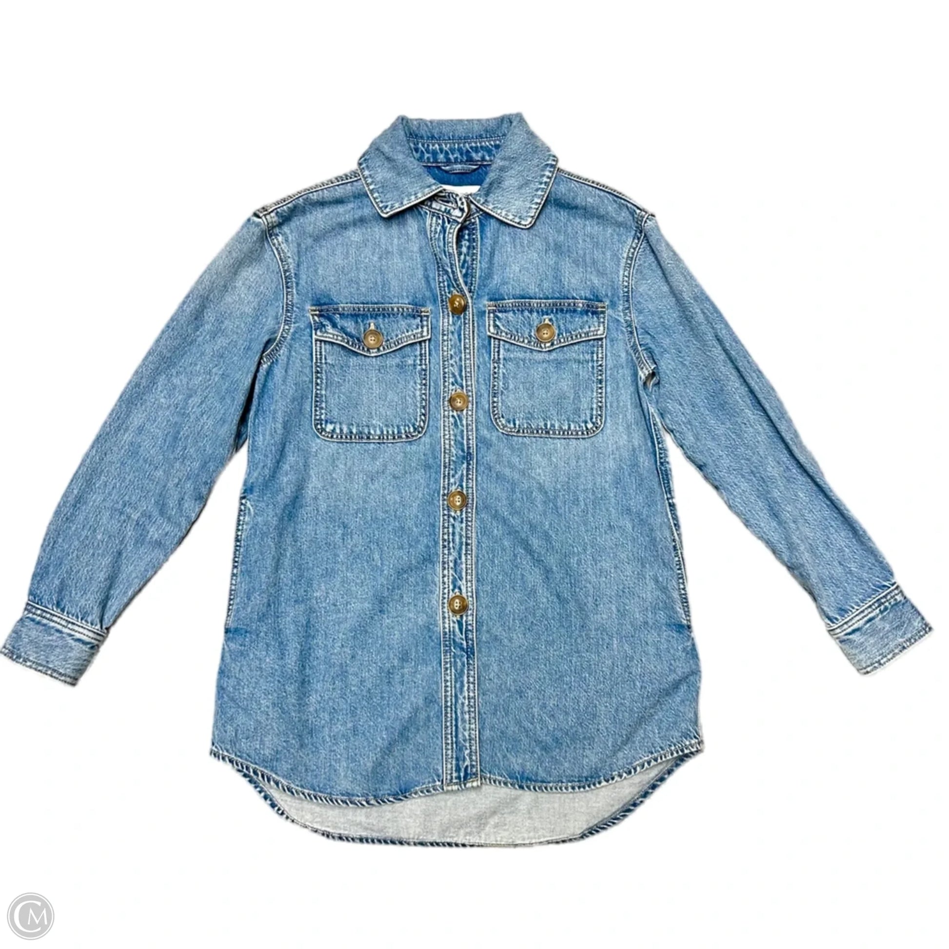 Jacket Shirt By Loft In Blue Denim, Size: Xs