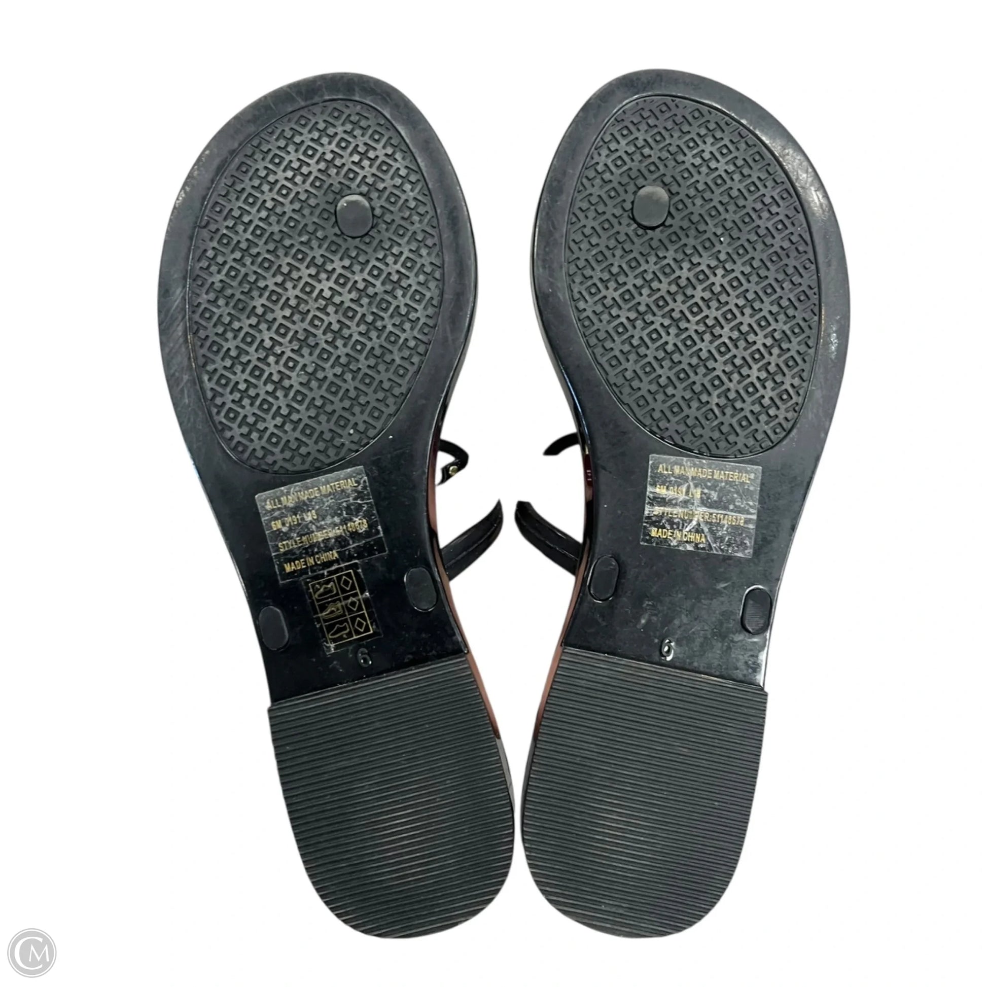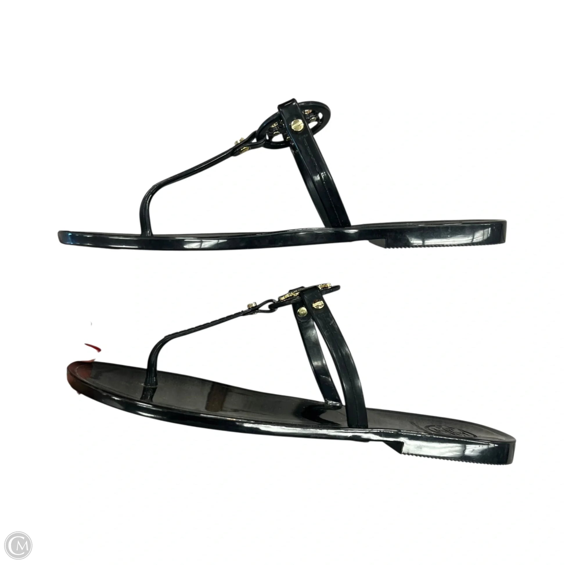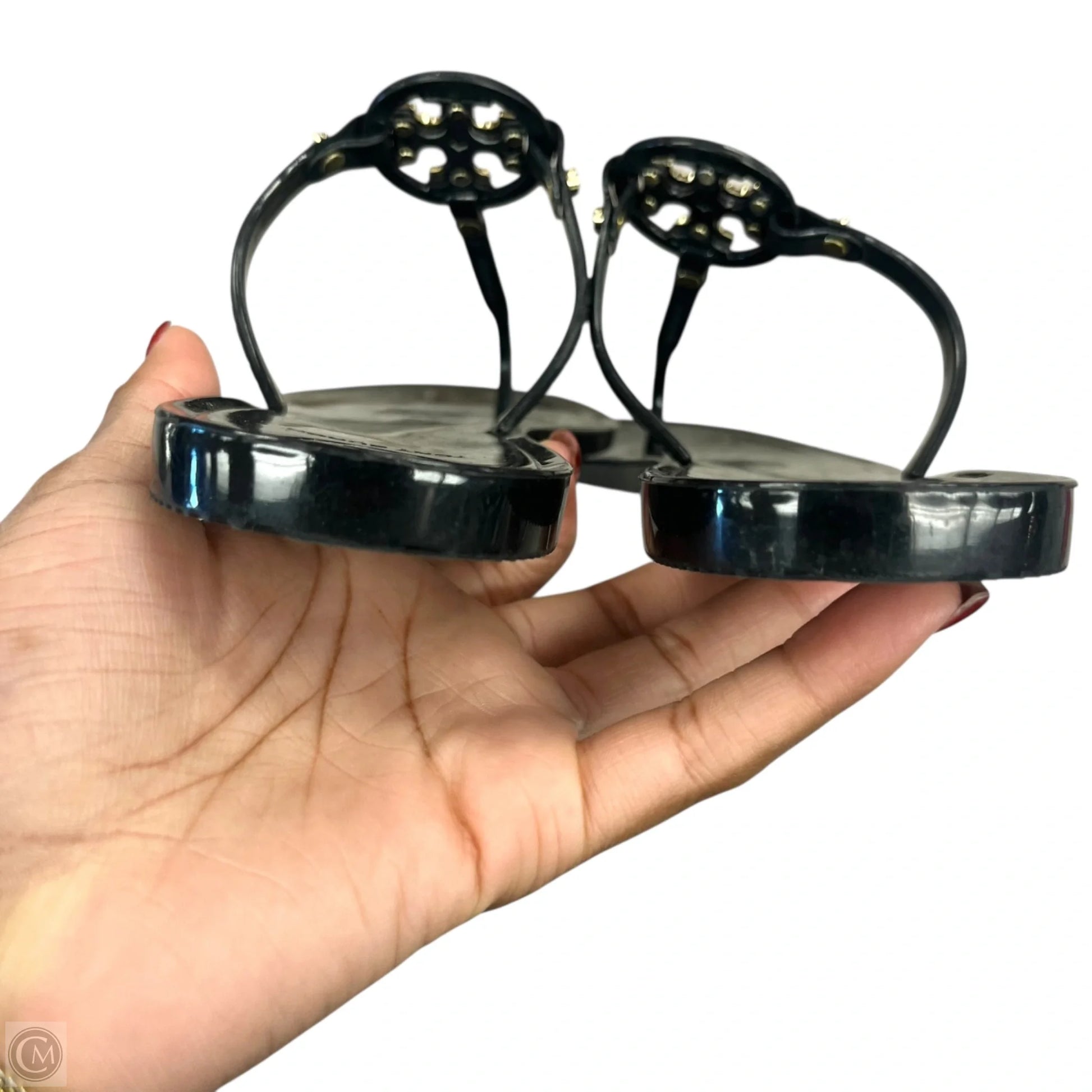 Sandals Designer By Tory Burch In Black & Gold, Size: 6
