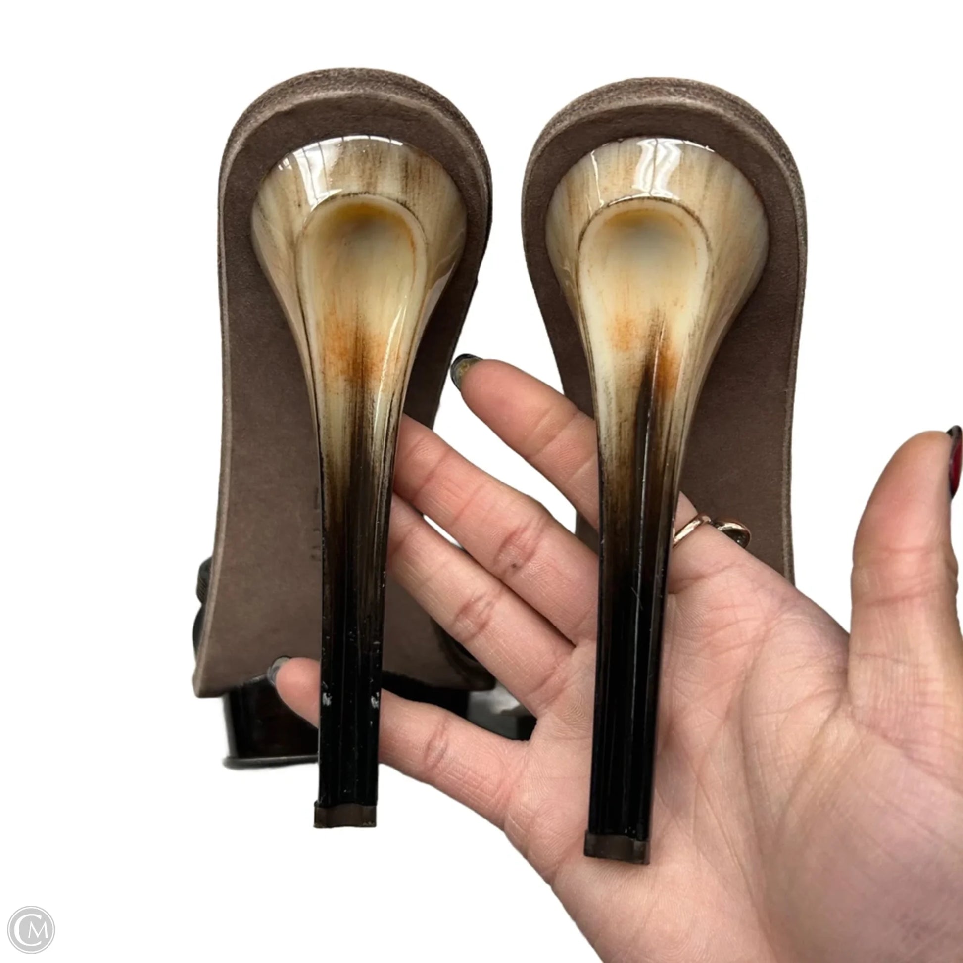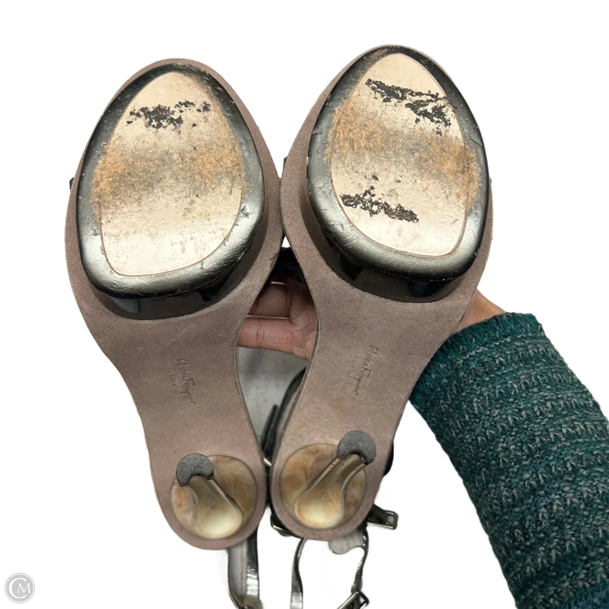 Sandals Luxury Designer By Ferragamo In Bronze, Size: 7.5