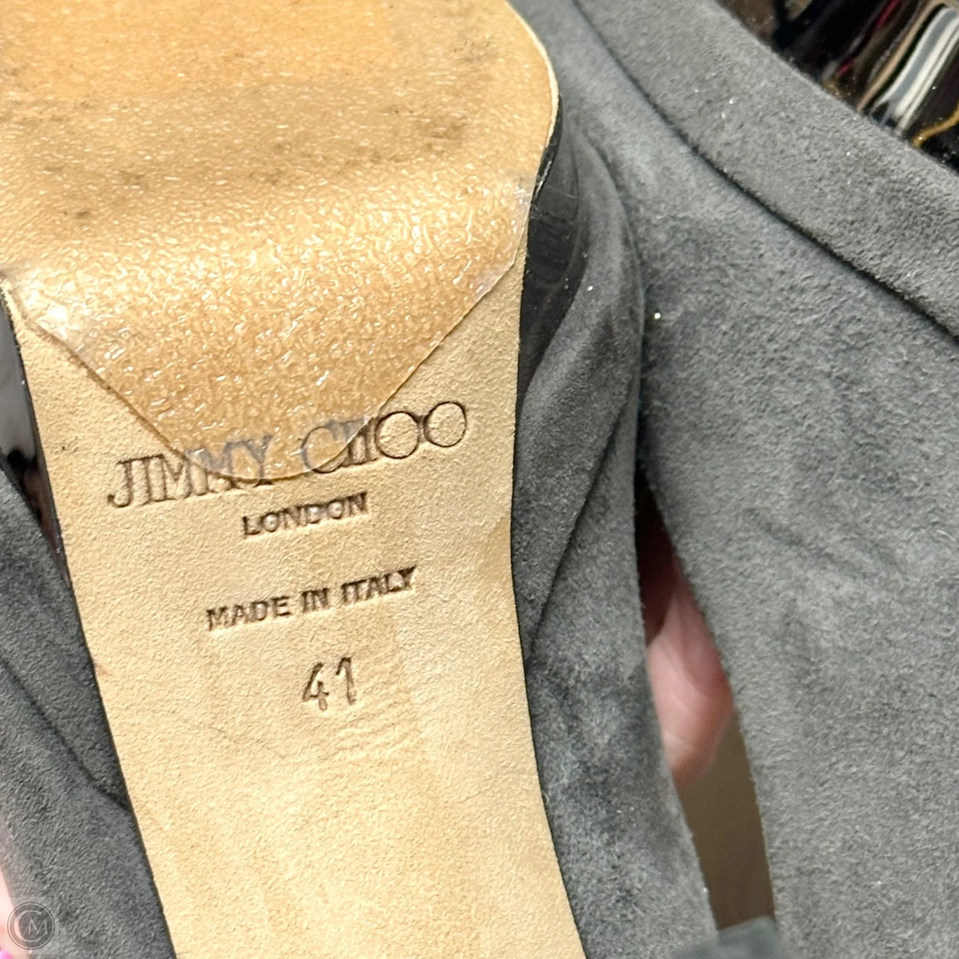 Shoes Luxury Designer By Jimmy Choo In Grey, Size: 10.5